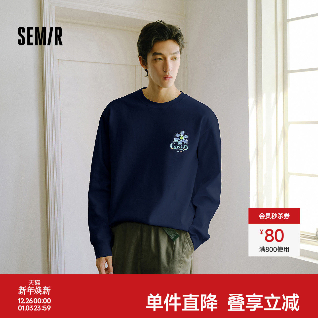 森马长袖T恤男春季卡通印花圆领情侣装2026新款运动元素涂鸦上衣