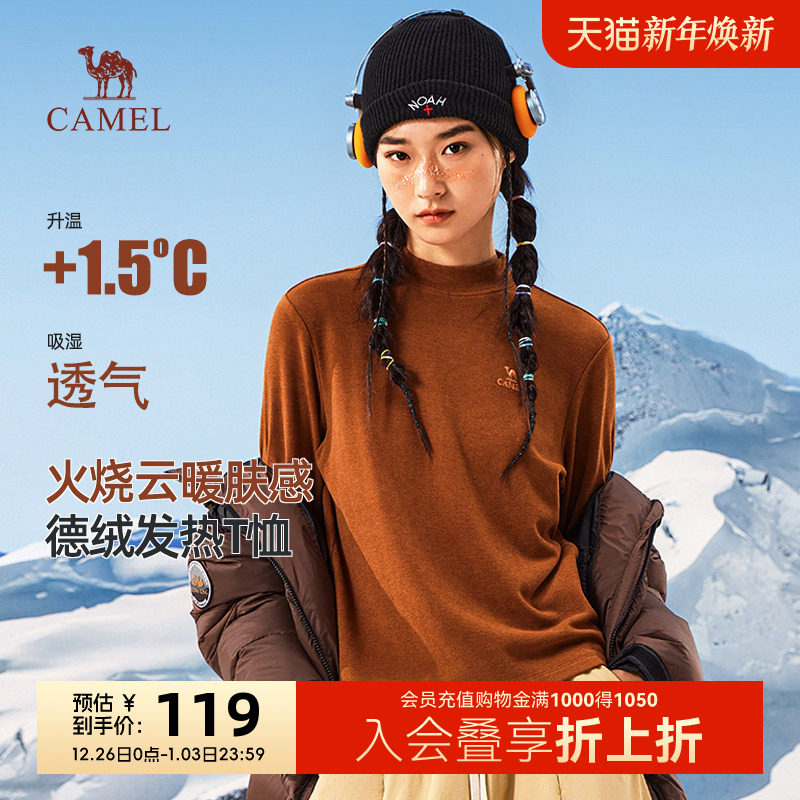 骆驼情侣款发热T恤2025秋冬新款半高领德绒保暖叠穿打底长袖上衣