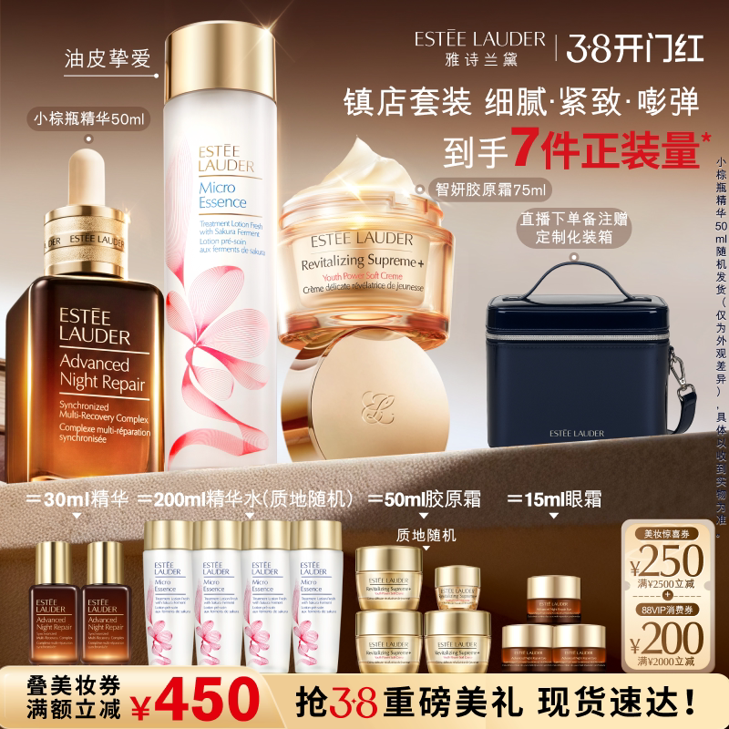 【38现货速发】雅诗兰黛护肤套装礼盒 小棕瓶精华+樱花水+胶原霜