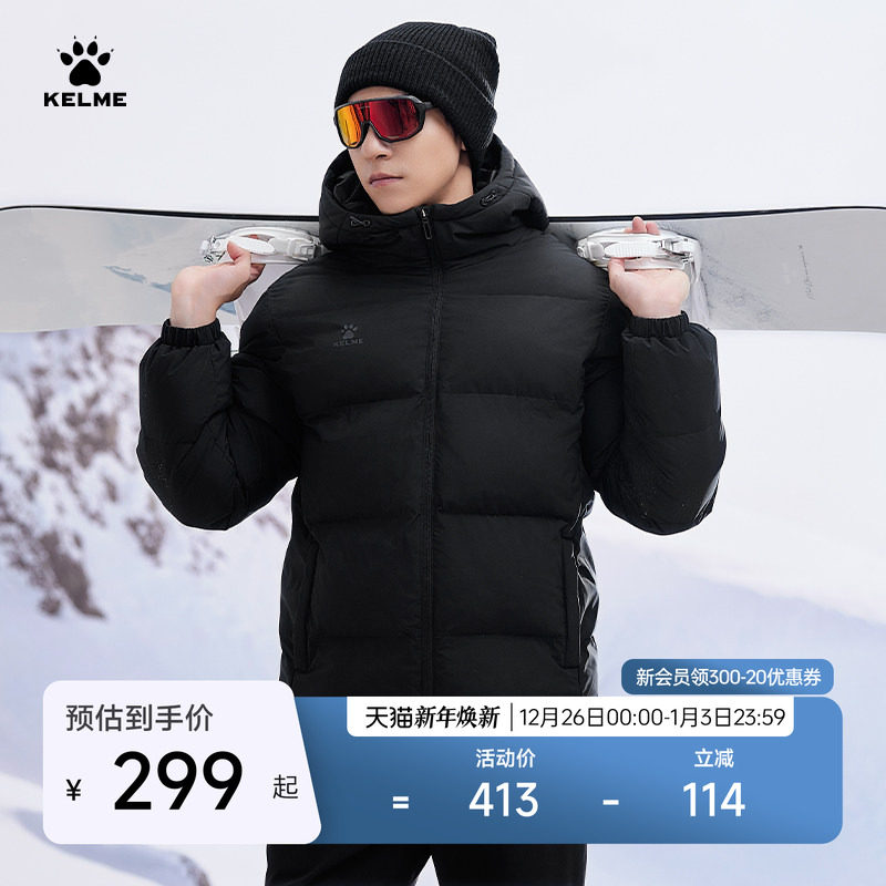 KELME卡尔美运动棉衣男冬季新款面包服连帽外套加厚保暖短款棉服