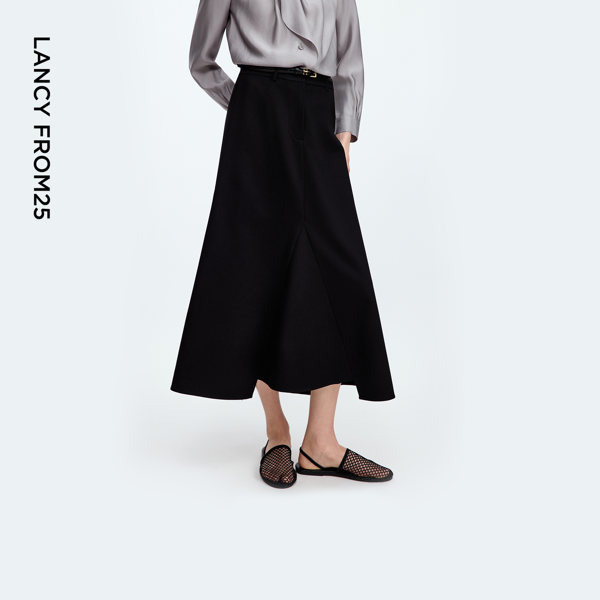 朗姿黑色鱼尾设计感半身裙长裙女优雅通勤高级半裙2025年秋季新款