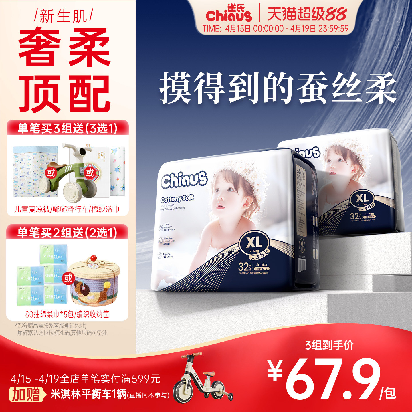 【真蚕丝】雀氏出口铂金柔润金棉婴儿纸尿裤透气NB-6XL拉拉裤2包