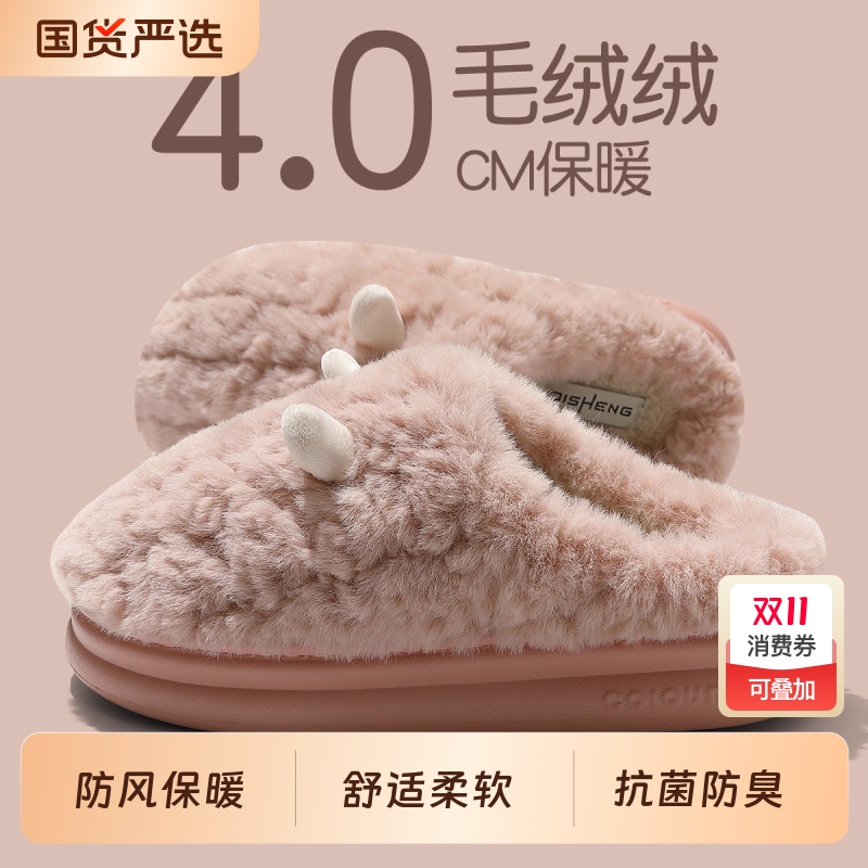 果壳拖鞋女冬季迪士尼联名2025新款毛毛拖鞋女居家棉拖鞋毛绒