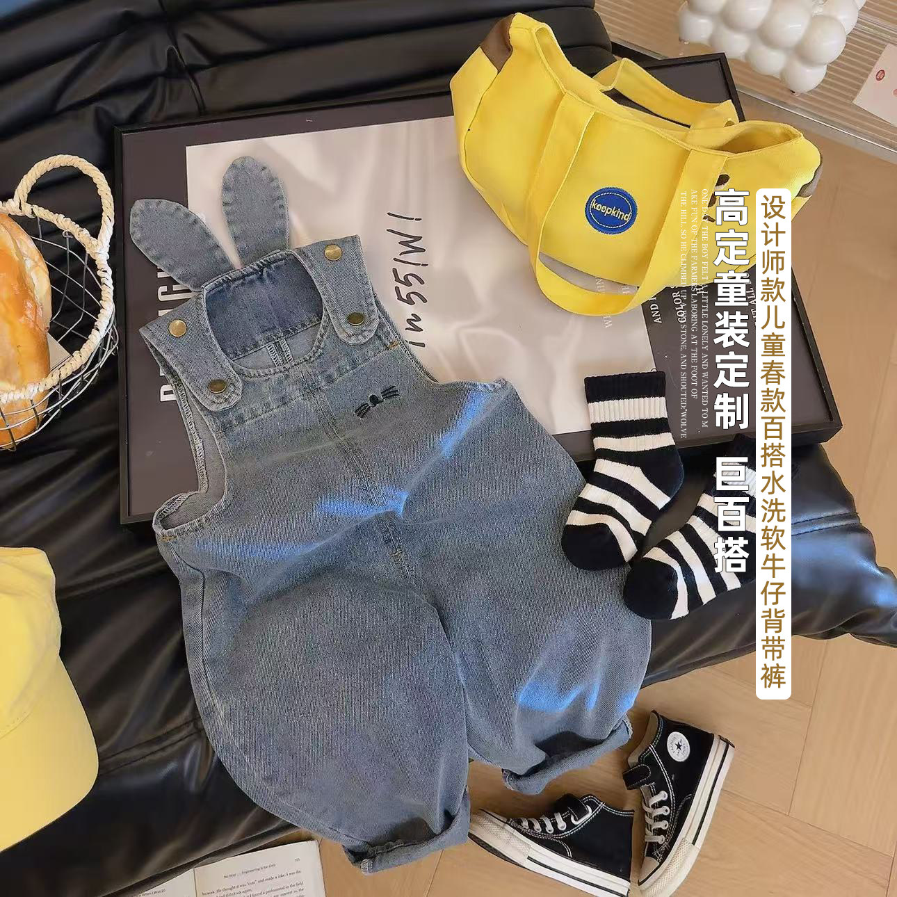 儿童牛仔背带裤春秋兔子耳朵男女小童洋气可爱休闲裤长裤【晴晴】