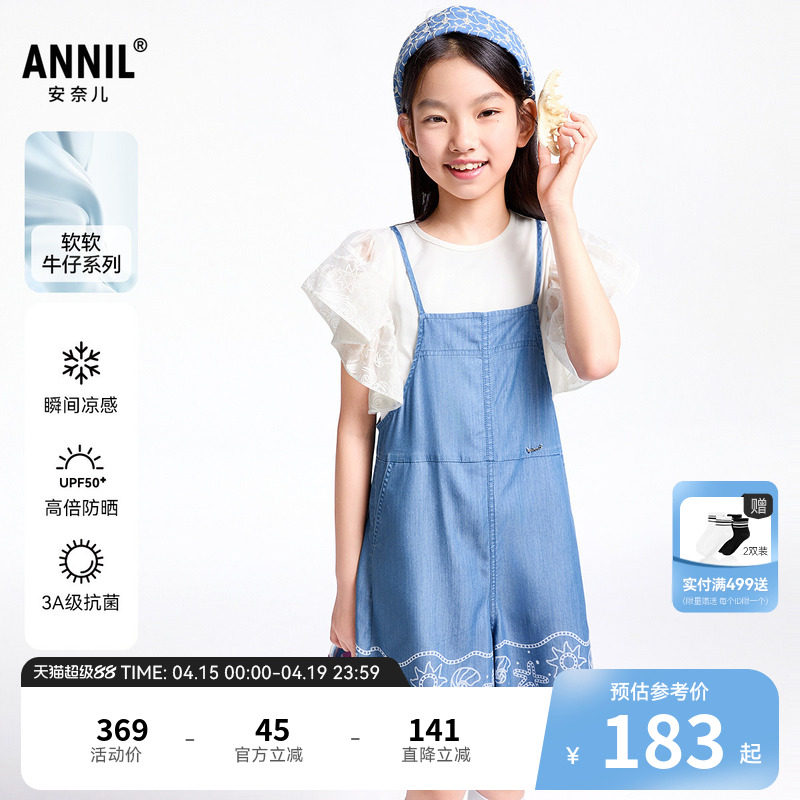 【商场同款】安奈儿童装女童牛仔背带裤夏新款抗菌AG526682