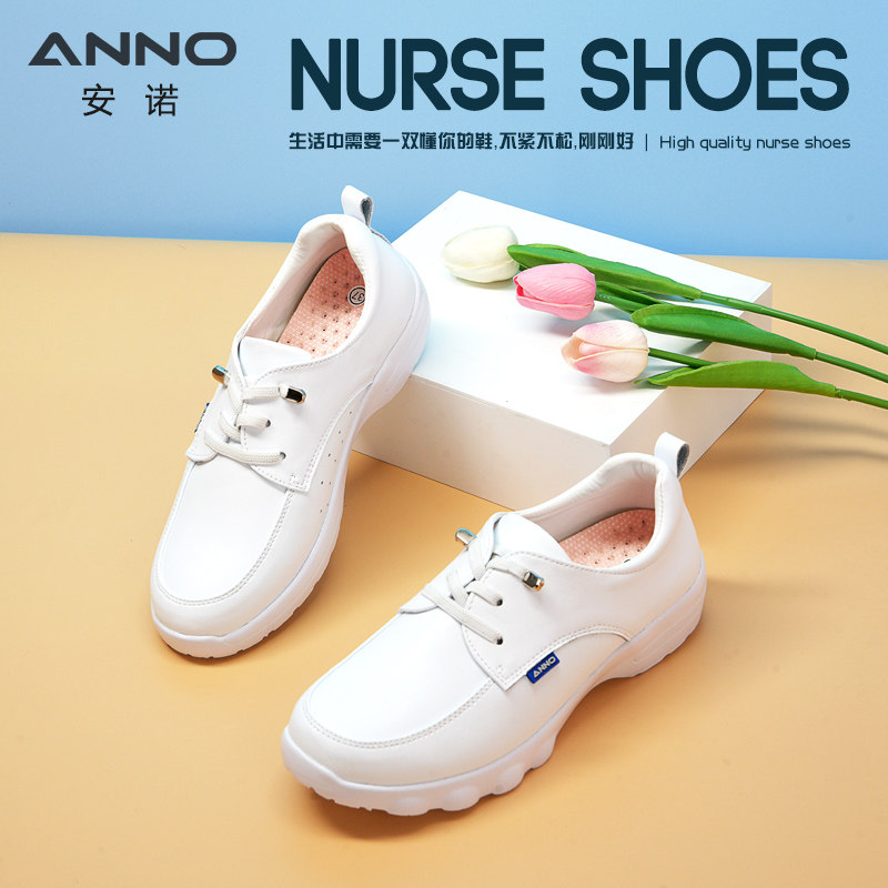 安诺/ANNO 护士鞋软底透气防臭防滑不累脚厚底增高真皮医护鞋
