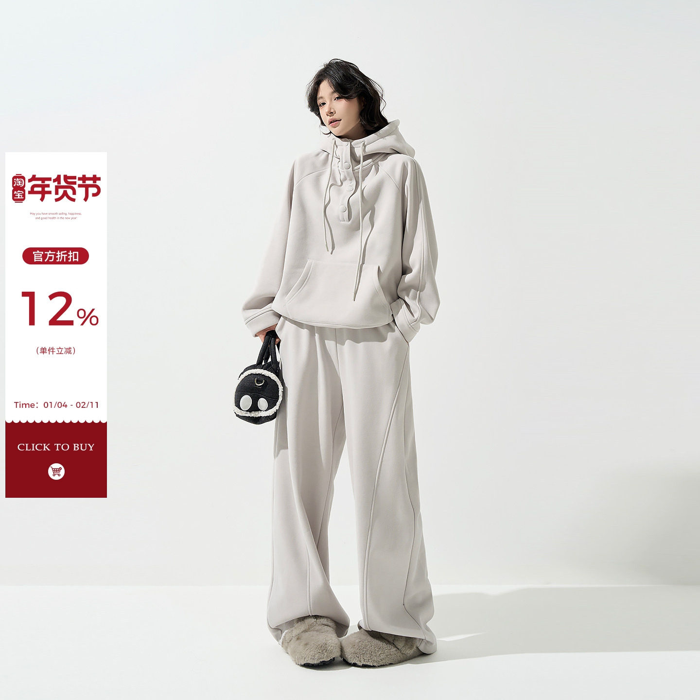 - 宽松连帽卫衣 女