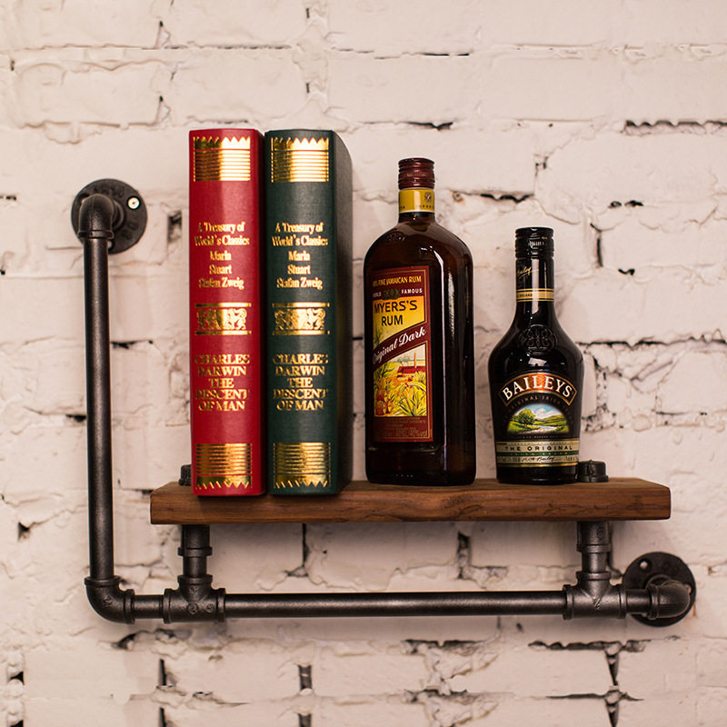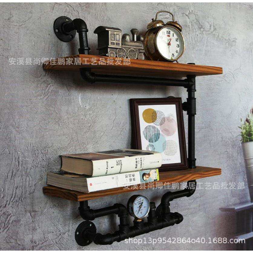 loft创意墙壁隔板工业风墙上书架水管置物架铁艺木质复古壁挂架
