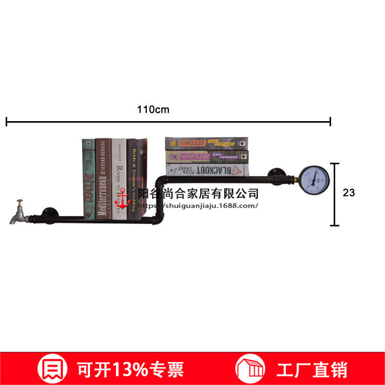 跨境工业风铁艺复古水管置物架墙上装饰架子书架铁艺置物架悬挂书