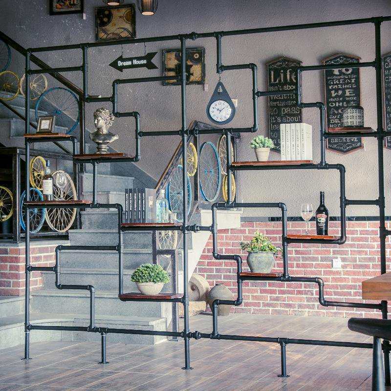 loft工业复古水管置物架咖啡厅酒吧美式落地屏风办公室书架可制定
