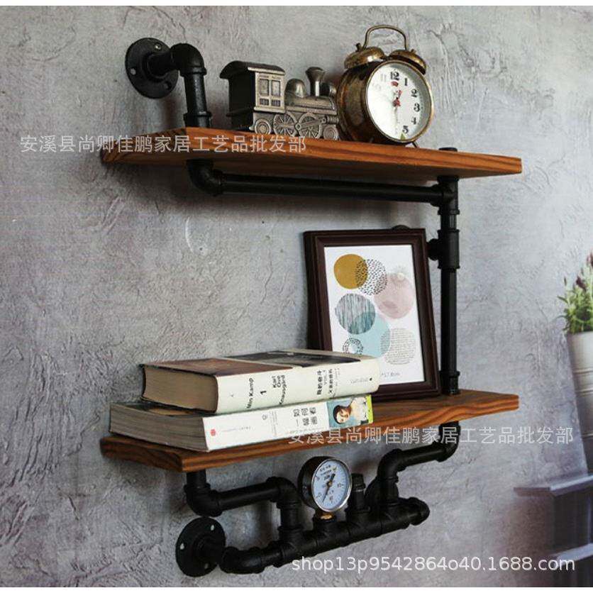 美式复古做旧铁艺水管搁板壁挂置物架墙壁水管层板书架墙上挂衣架