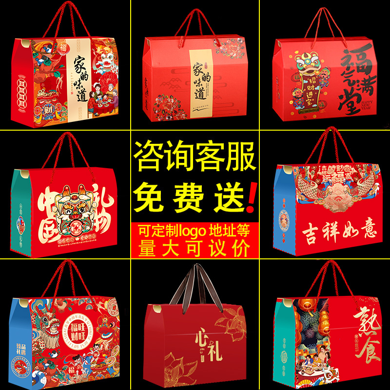 春节礼盒年货包装盒礼品盒高档精致手提通用定制卤味熟食品空盒子