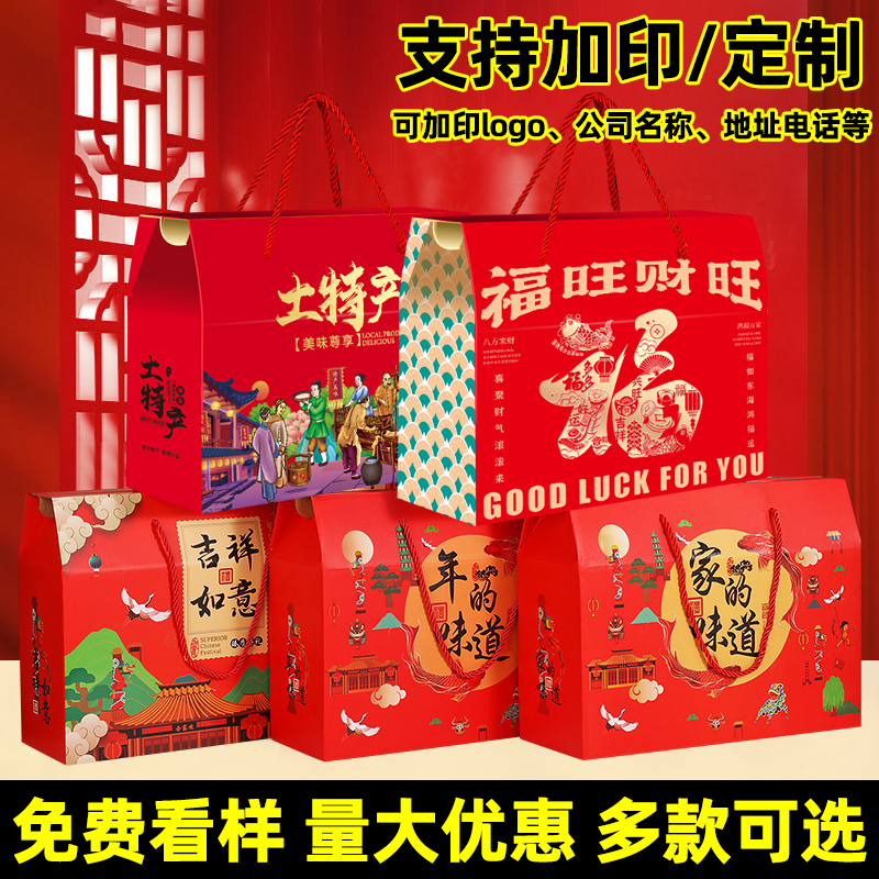 春节年货礼品盒高档手提大空盒子土特产水果糕点菌菇定制加印logo