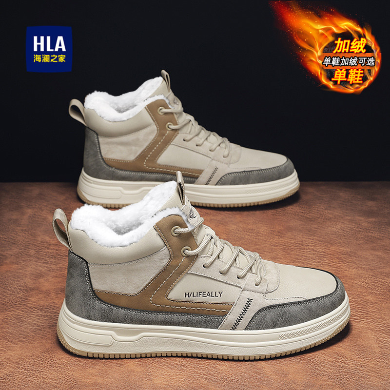 海澜之家男鞋冬季加绒加厚东北大棉鞋保暖厚底中高帮板鞋皮毛一体