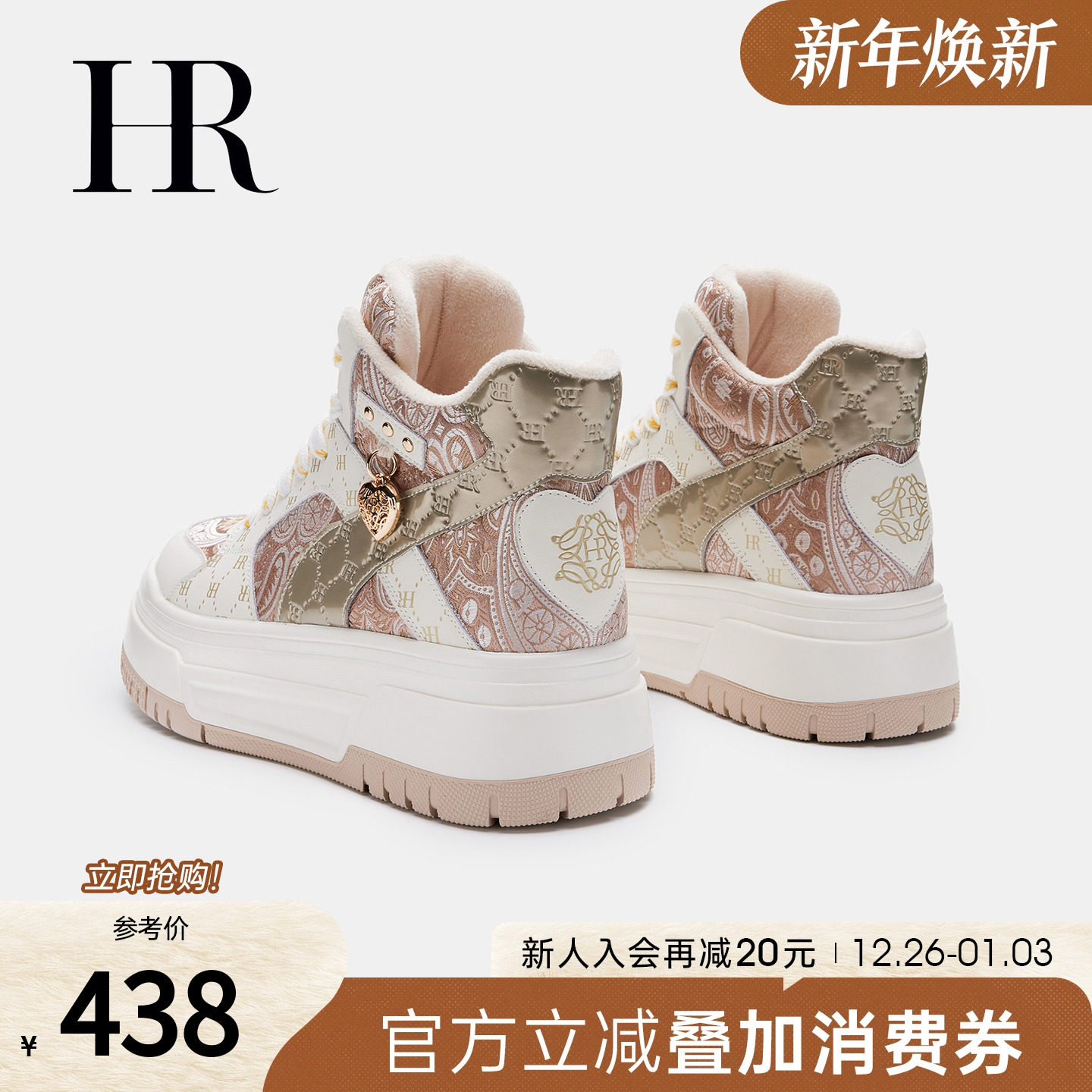 HR赫莲娜板鞋2025秋冬季新款高帮鞋新中式厚底休闲女鞋子加绒加厚