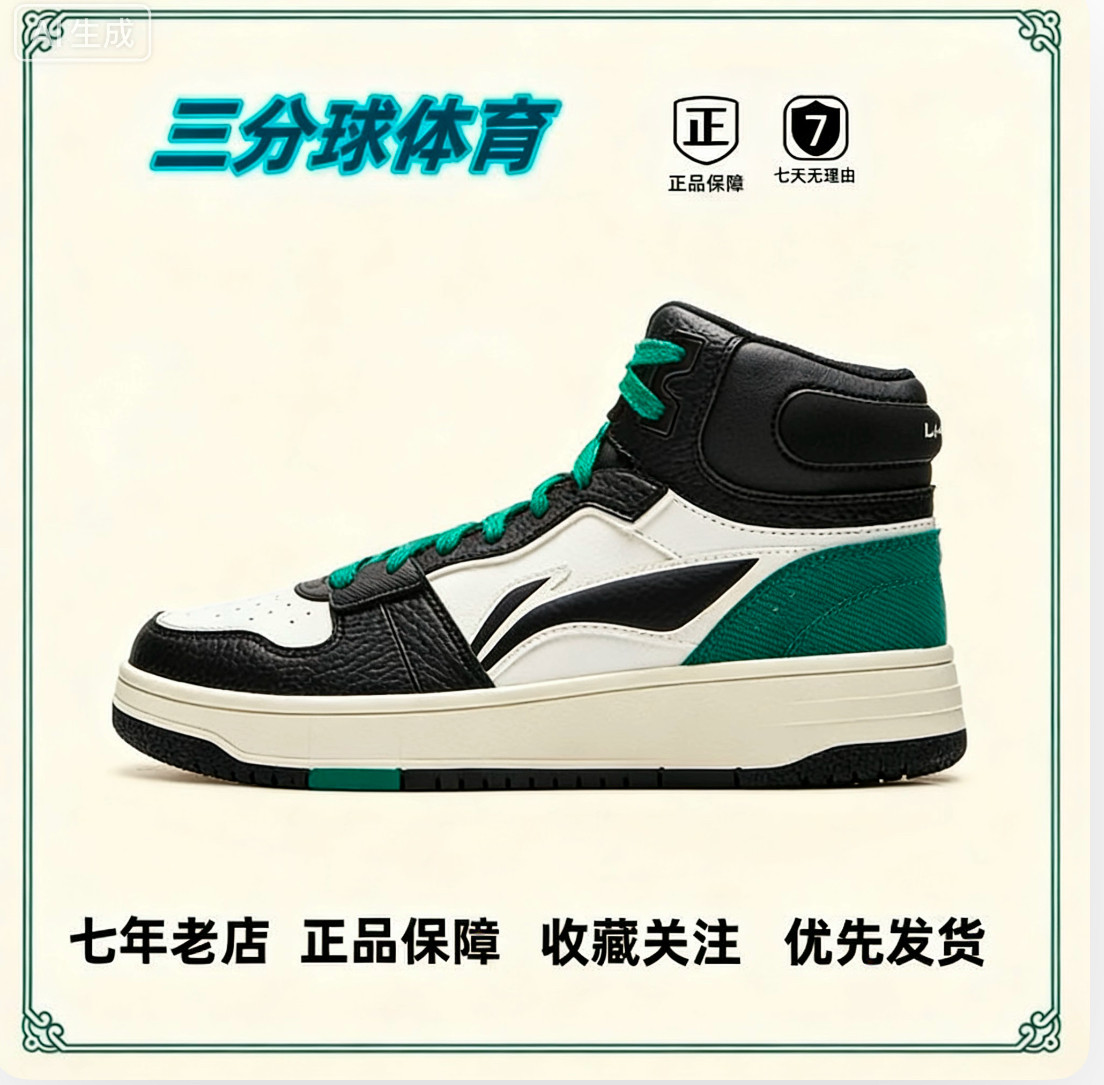 李宁月白2 MID休闲鞋男鞋秋冬新款加绒复古黑色板鞋中高帮运动鞋