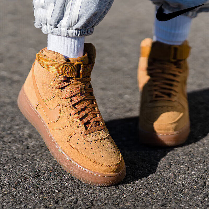 Nike耐克空军一号小麦色中高帮板鞋女鞋运动鞋麂皮百搭轻便休闲鞋