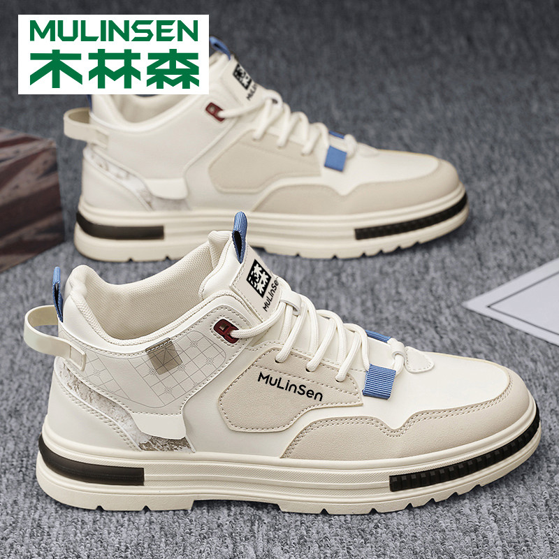 森马男鞋冬季潮流百搭高帮休闲板鞋青少年中帮运动真皮防水小白鞋