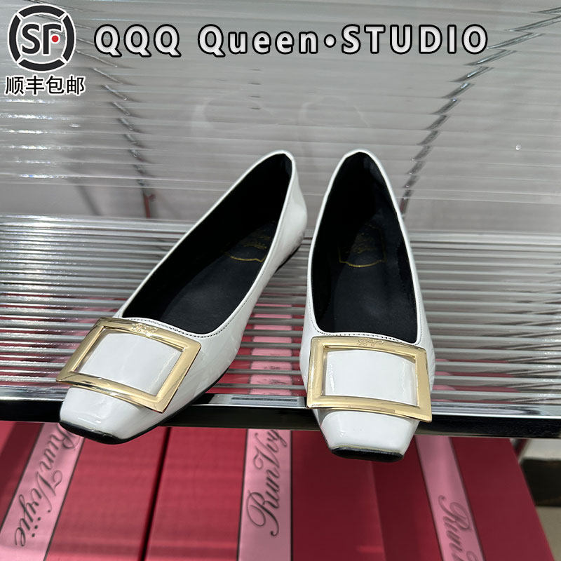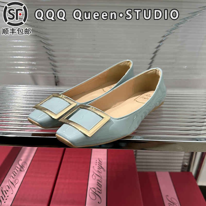 2025年新款rv方扣方头漆皮平底鞋浅口高跟鞋新款女鞋平底通勤单鞋