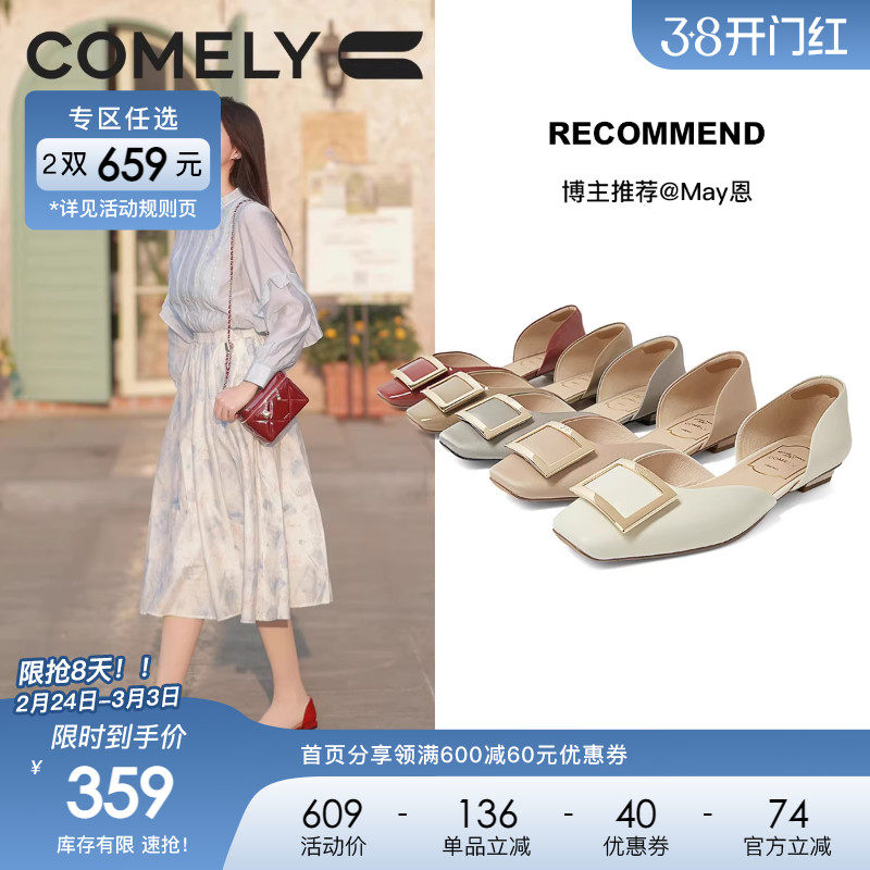 康莉rv方扣单鞋女2025年春季新款商场同款优雅尖头平底法式女鞋