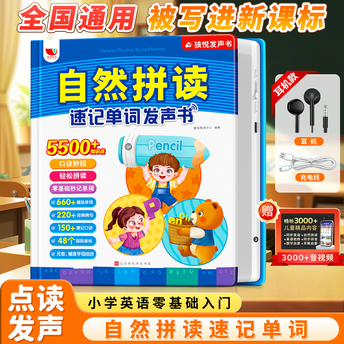 小学生自然拼读英语教材零基础入门速记单词有声书儿童三四五六年级英语音标和自然拼读点读发声书启蒙学习机送自然拼读发音规则表