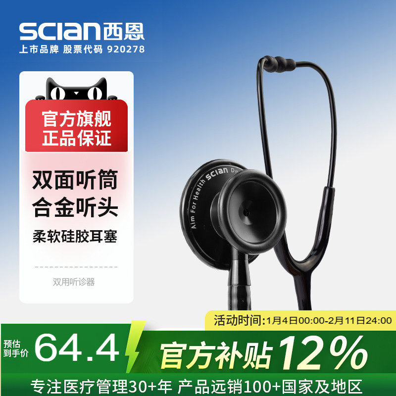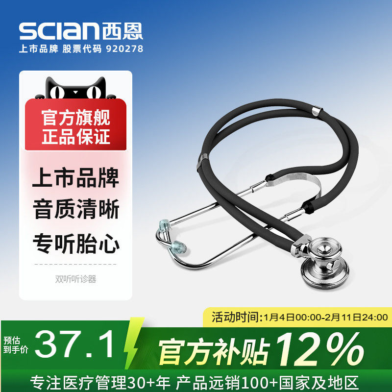西恩双管听诊器医用可听胎心儿科医学生双听多功能心肺呼吸科30C