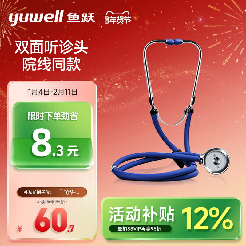 鱼跃牌单用听诊器测量血压专业听筒心肺双听医生家用胎心全铜听头