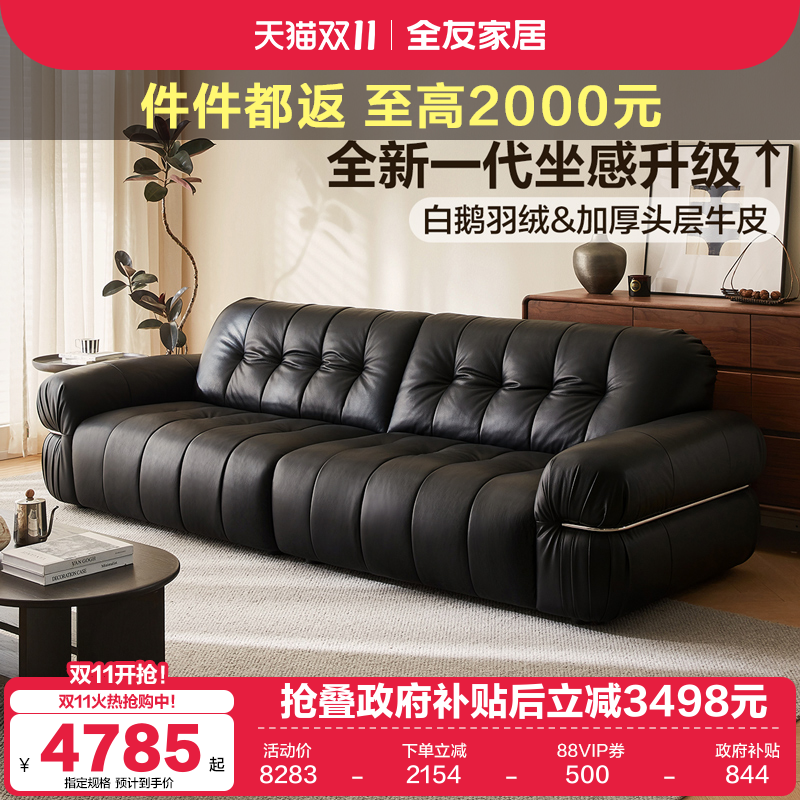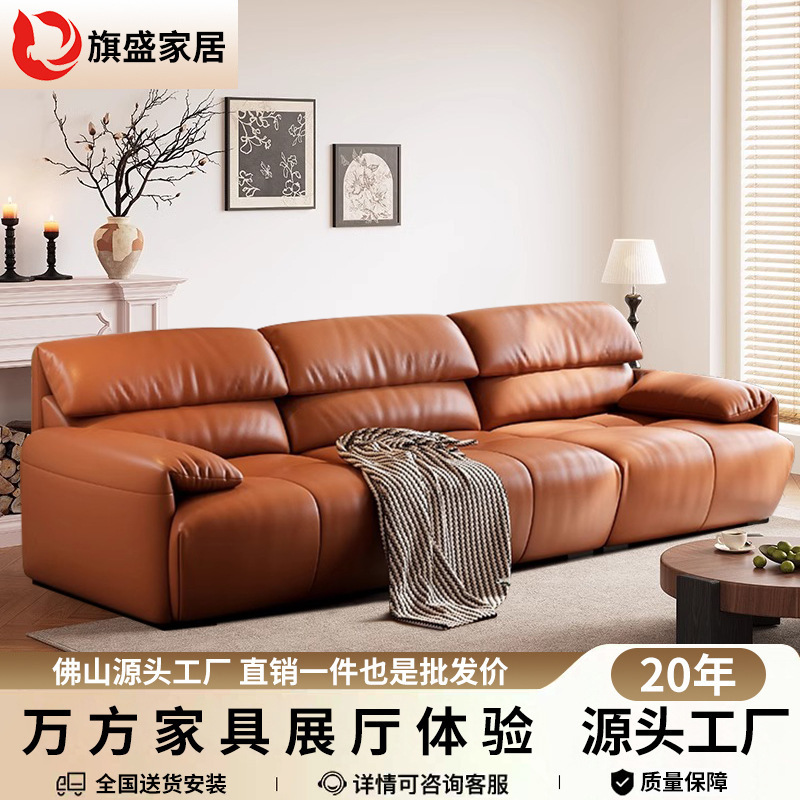 政府补贴意式极简云朵真皮沙发头层牛皮羽绒直排沙发客厅2025新款