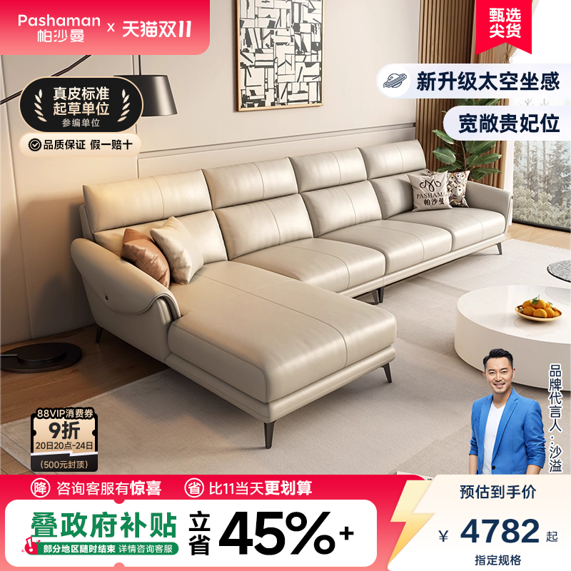 帕沙曼真皮沙发进口头层牛皮意式极简约现代客厅高背转角乳胶羽绒
