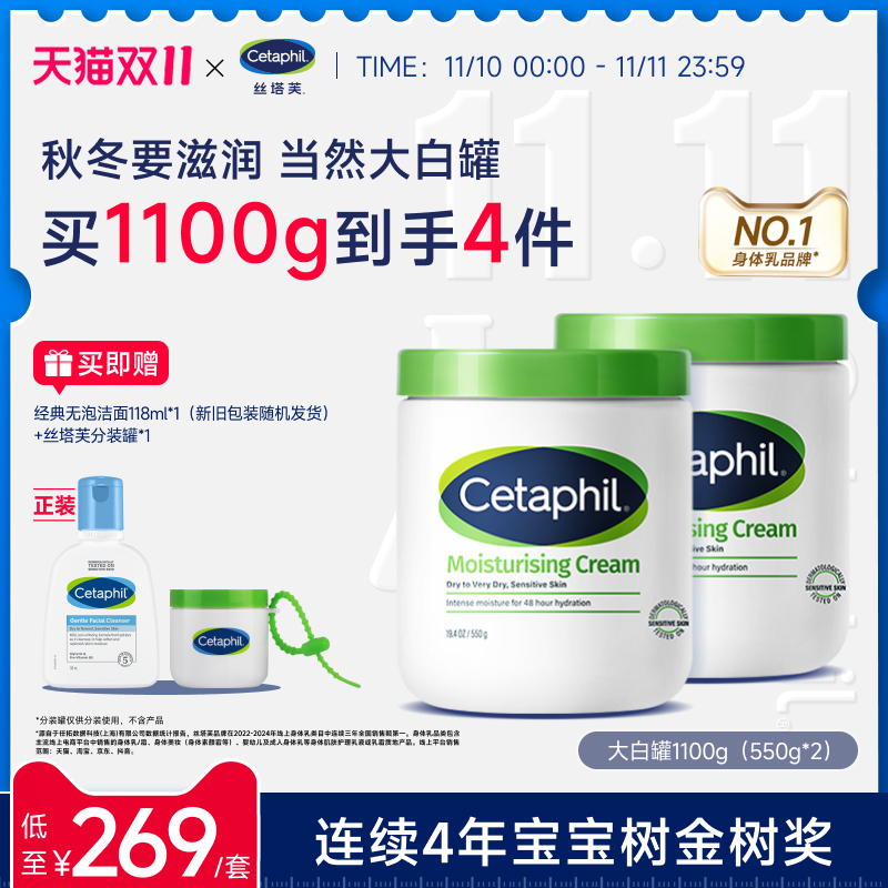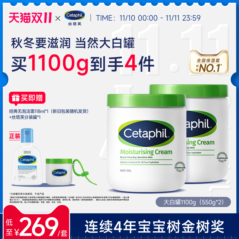 【自营】Cetaphil丝塔芙大白罐550g*2不含舒润保湿霜母婴婴幼儿用