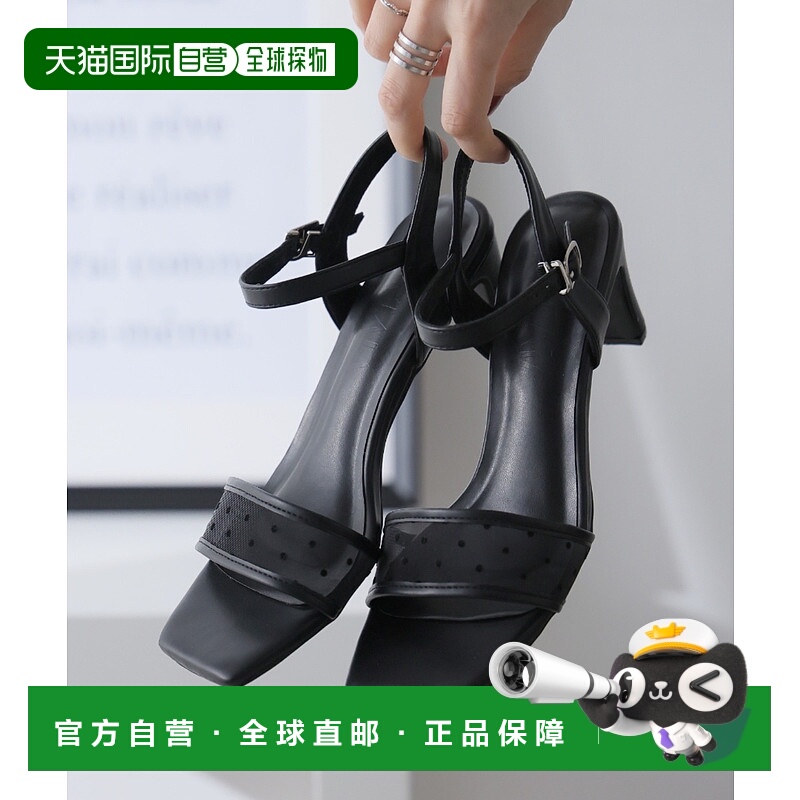 1h可退 日本直邮Vivian女士透视网纱方头绑带高跟凉鞋 V63503SM