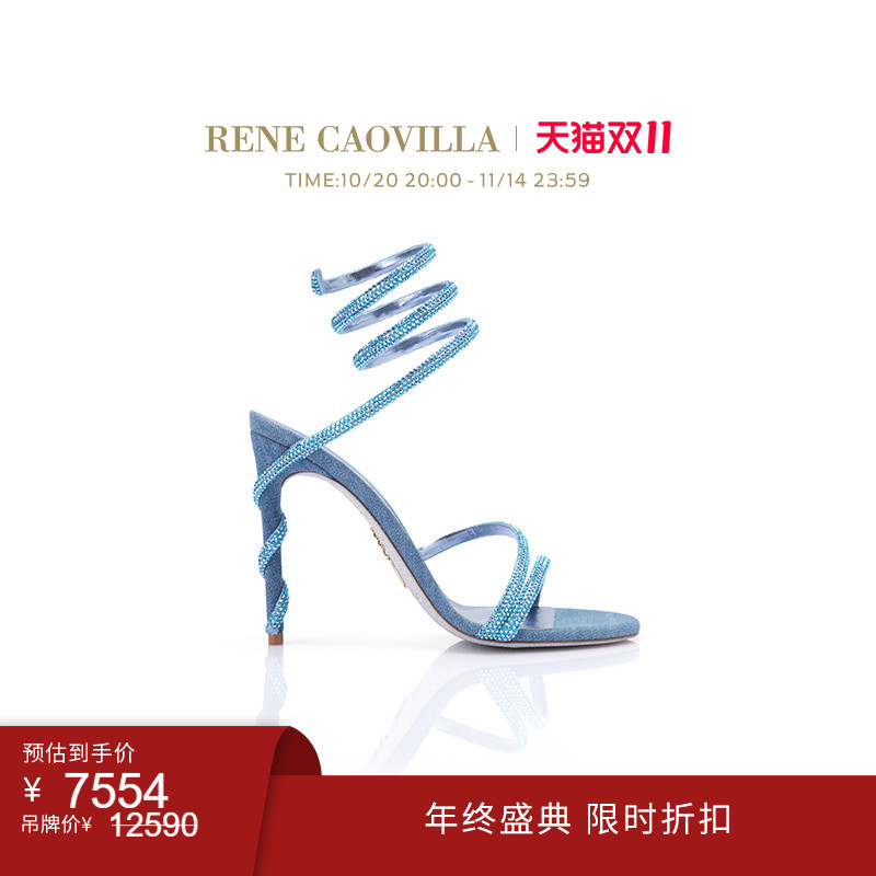 【双11折扣】RENE CAOVILLA MARGOT系列水钻绑带高跟凉鞋