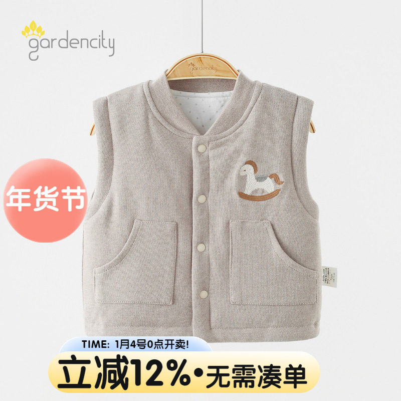 婴儿马甲秋冬保暖80g夹棉卡通木马男女宝宝薄棉立领对开马夹坎肩