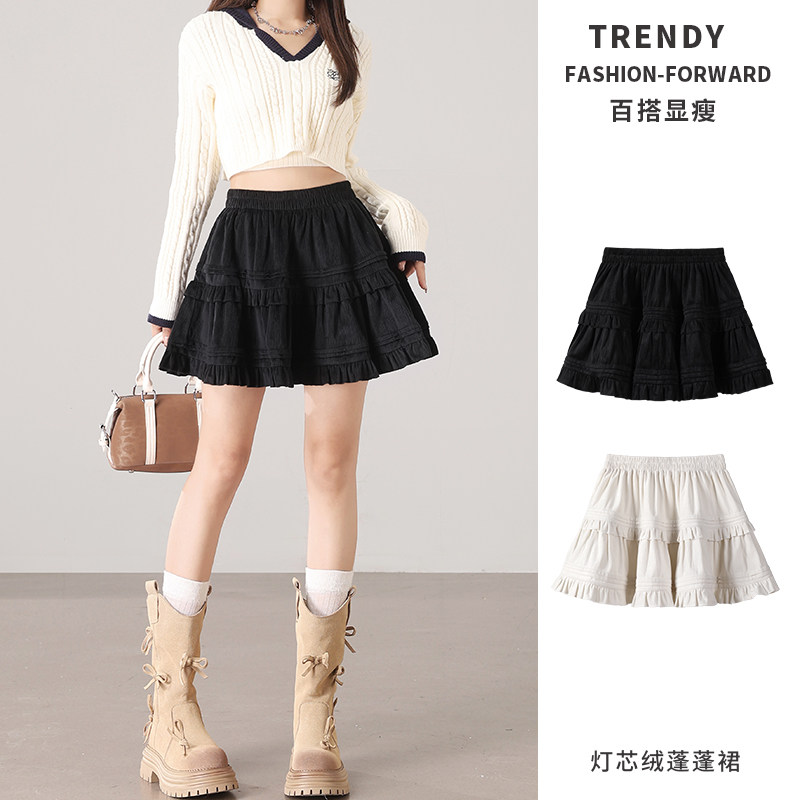 复古灯芯绒蛋糕裙女2025新款高腰半身裙秋冬款蓬蓬短裙显瘦伞裙