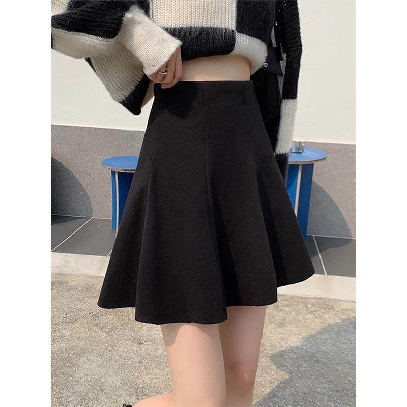 针织短裙女秋冬加厚韩版百搭a字裙显瘦高腰半身裙百褶伞裙蓬蓬裙