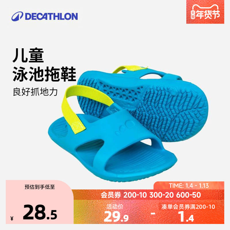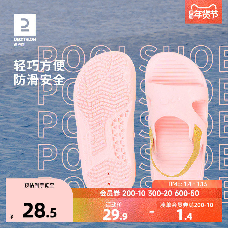 迪卡侬泳池拖鞋儿童宝宝防滑厚底凉鞋青少年轻便快干游泳体育KIDK
