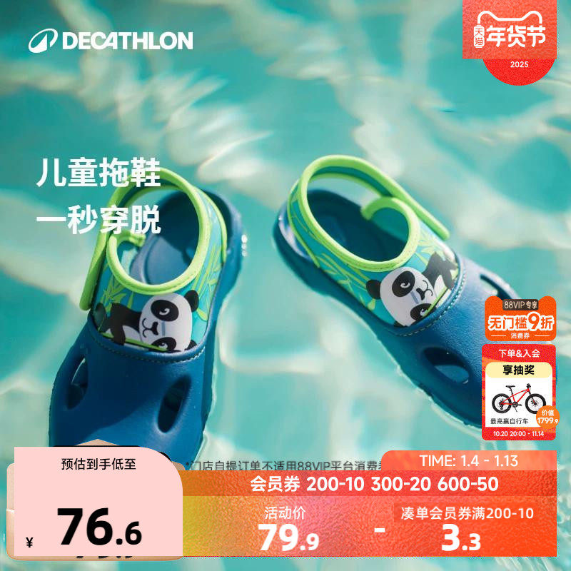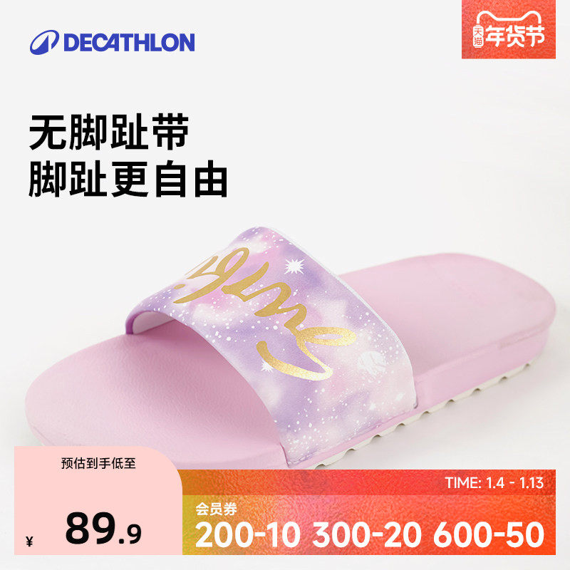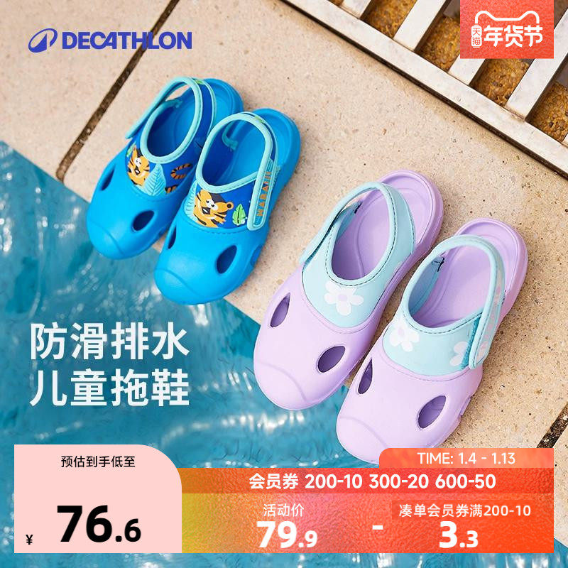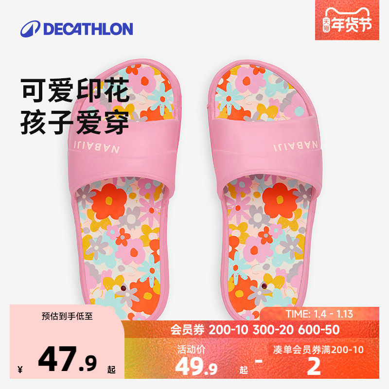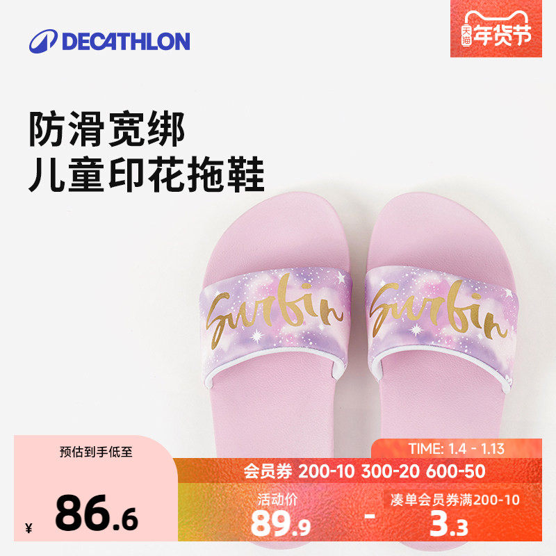 迪卡侬儿童游泳拖鞋泳池防滑青少年夏凉拖男女童拖鞋印花凉鞋KIDK