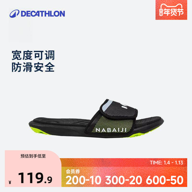 迪卡侬男士游泳拖鞋泳池凉鞋防滑可调节速干按摩男运动拖鞋IVK3