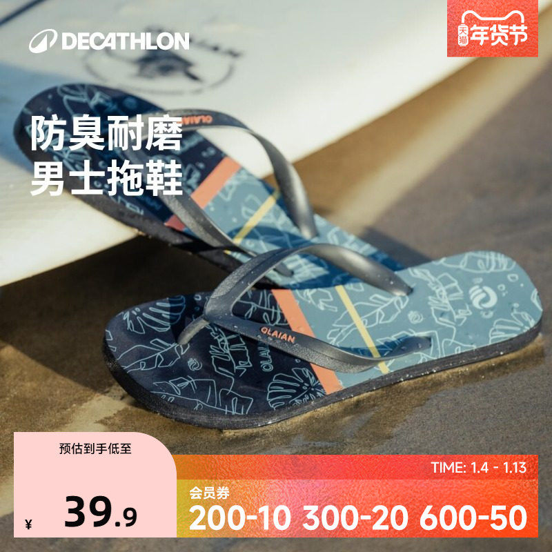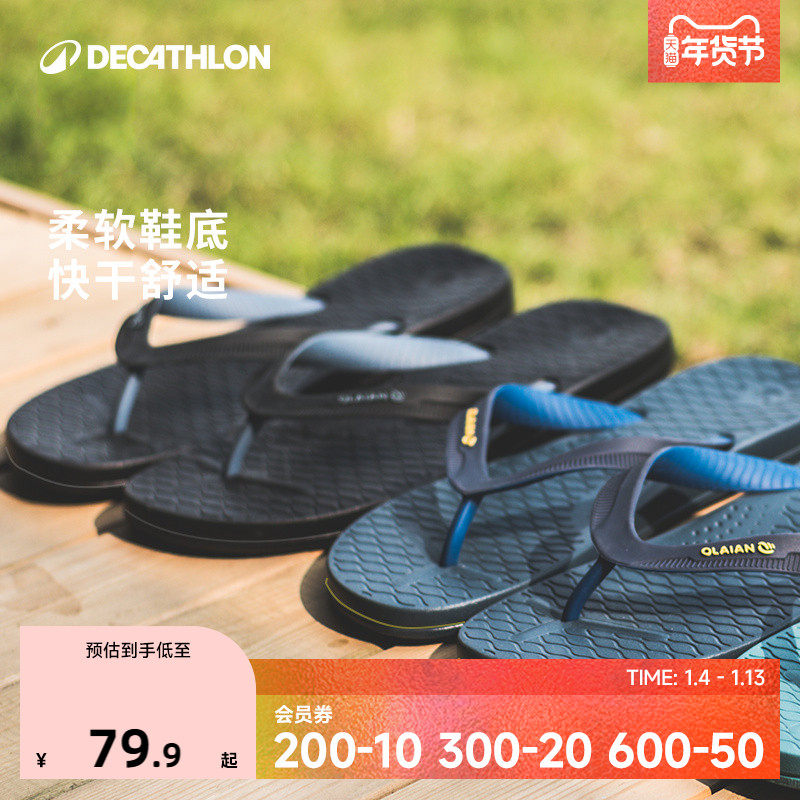 迪卡侬人字拖男拖鞋软底沙滩鞋一体耐磨夹脚拖柔软注塑舒适OVOF