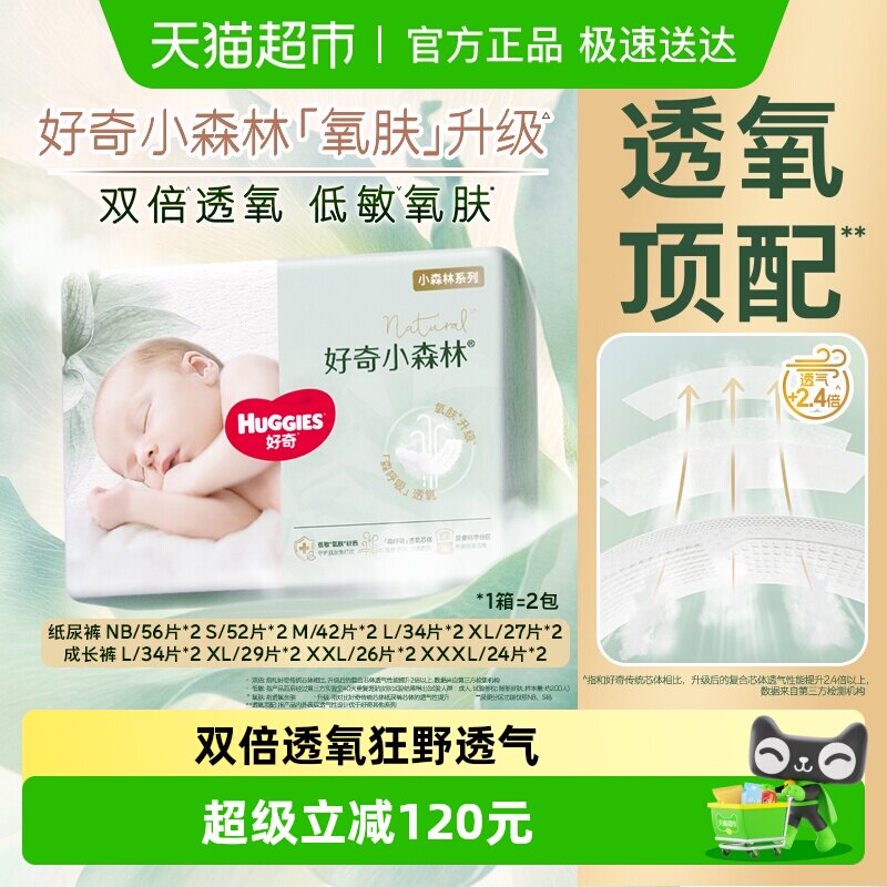 【百亿补贴】好奇小森林NB-XXXL码纸尿裤拉拉裤新生儿尿不湿透气