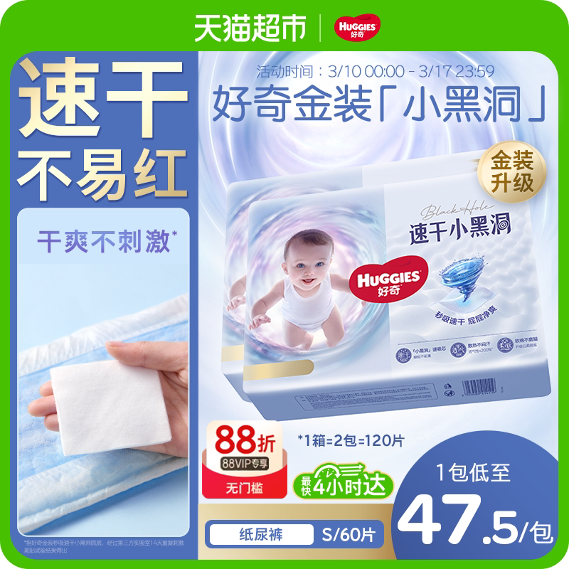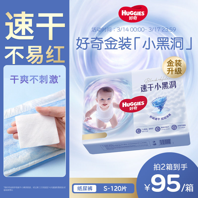 官方好奇金装小黑洞婴儿纸尿裤S120超薄透气新生儿宝宝尿不湿