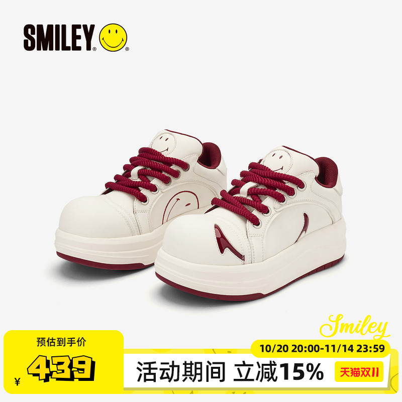 SMILEY笑脸鞋大头鞋秋季白鲸白红色厚底增高休闲圆头板鞋女鞋子