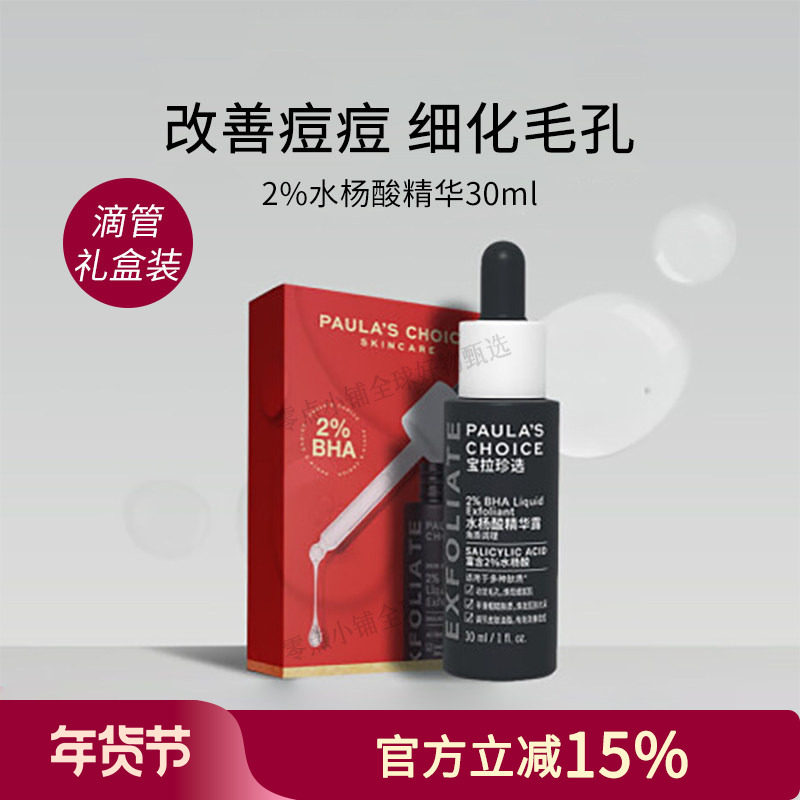 宝拉珍选2%水杨酸精华液30ml 净痘黑头痘肌闭口粉刺 滴管礼盒装