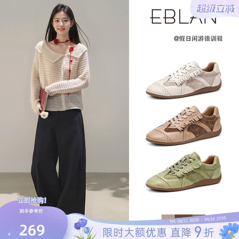 EBLAN/伊伴雕花布洛克德训鞋女2026春季新款平底流苏运动休闲鞋子