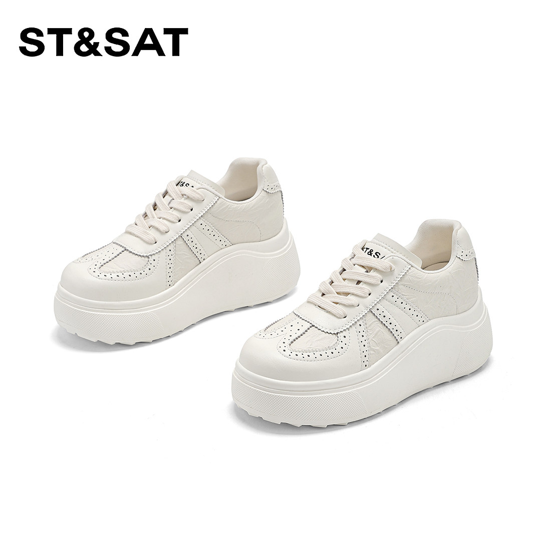 星期六7cm显高小白鞋女布洛克雕花厚底百搭复古阿甘鞋运动休闲鞋