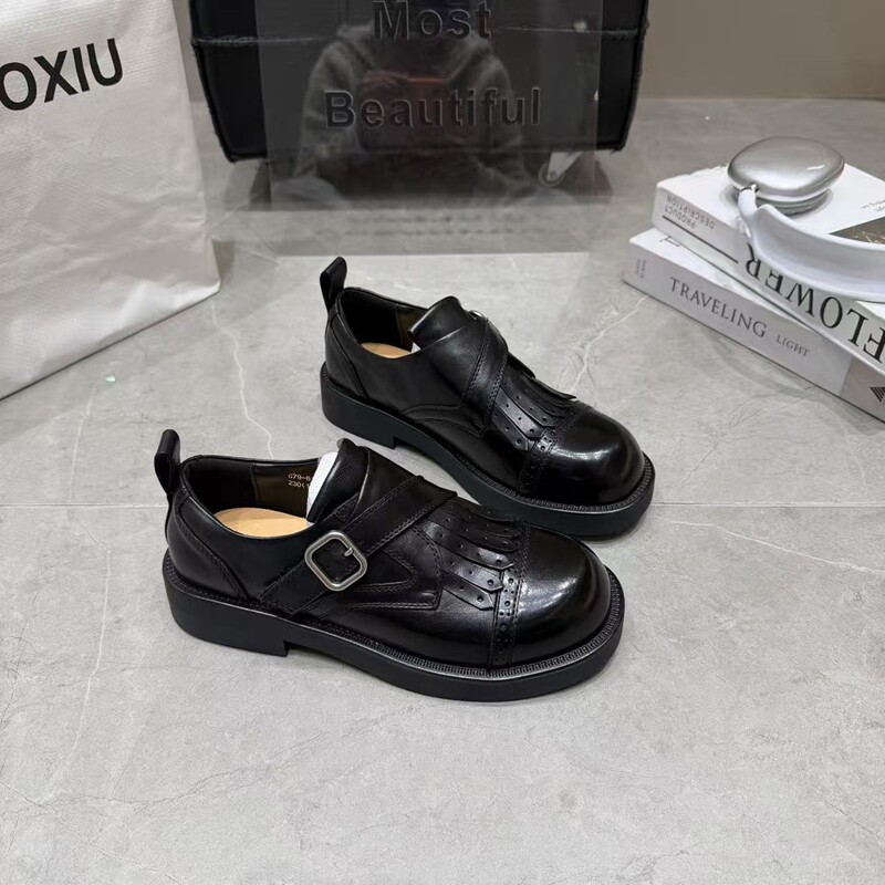 英伦风牛皮软底布洛克鞋女2026春新款皮带扣小皮鞋百搭休闲单鞋