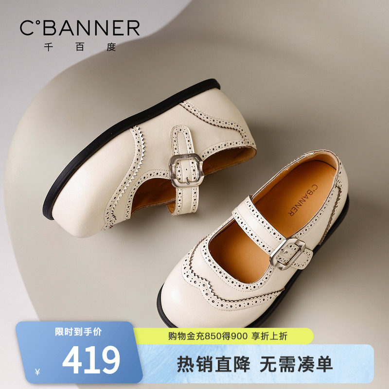 千百度玛丽珍鞋女2026春季新款百搭厚底浅口单鞋乐福布洛克小皮鞋