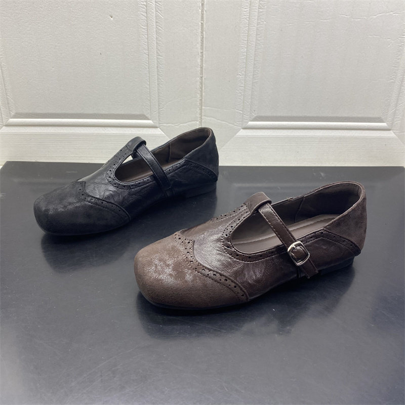 2026年春季款英伦风布洛克玛丽珍鞋女复古圆头低跟小皮鞋休闲单鞋