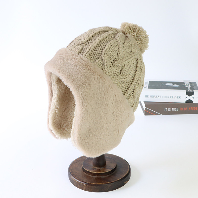 热风女士帽子2025年冬季新款毛绒拼接护耳毛线帽保暖显脸小帽子