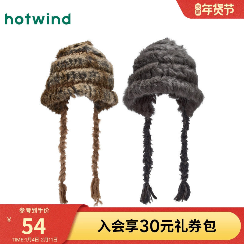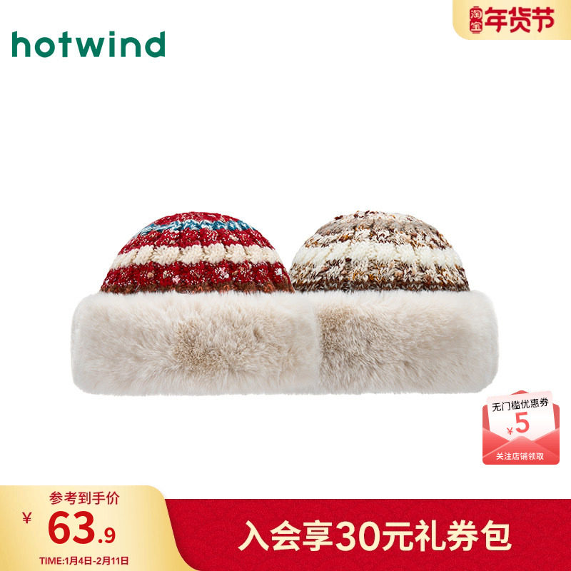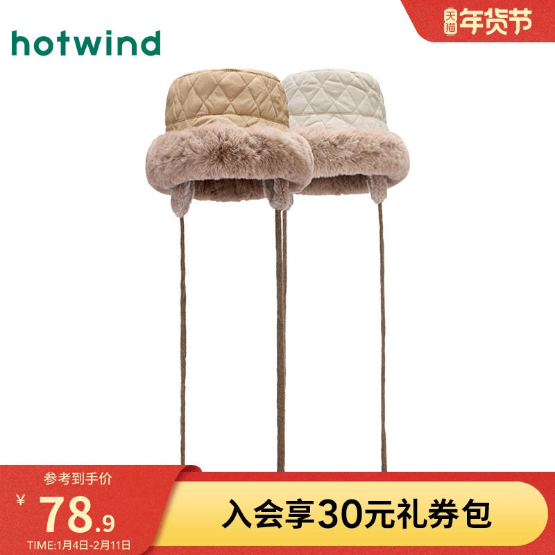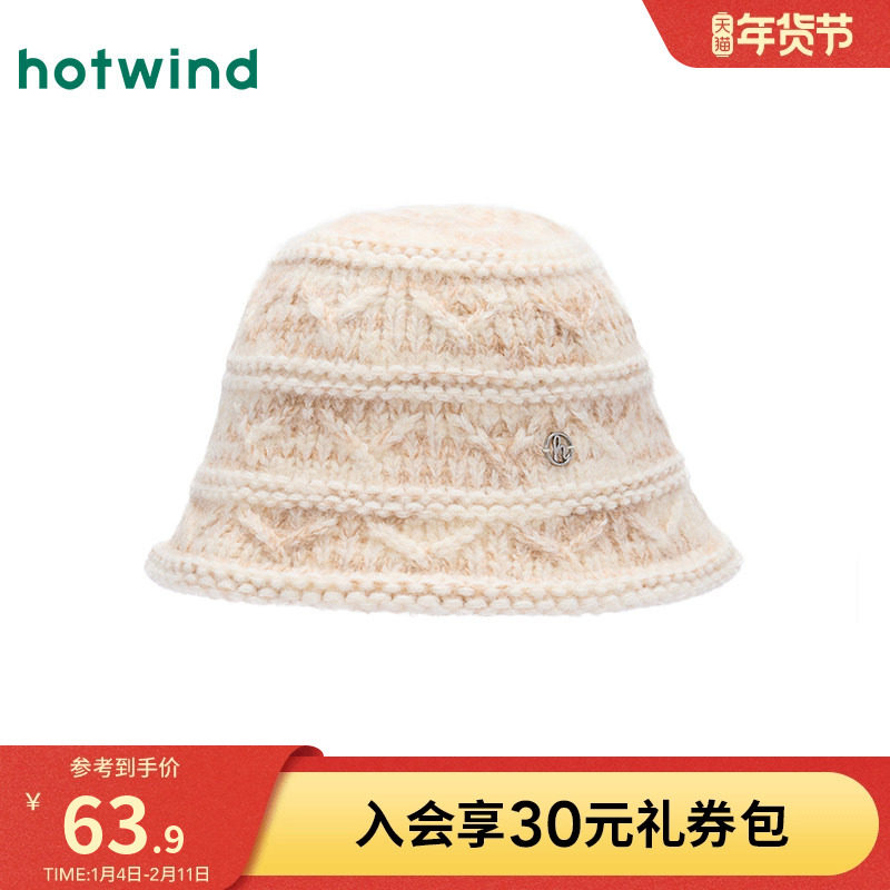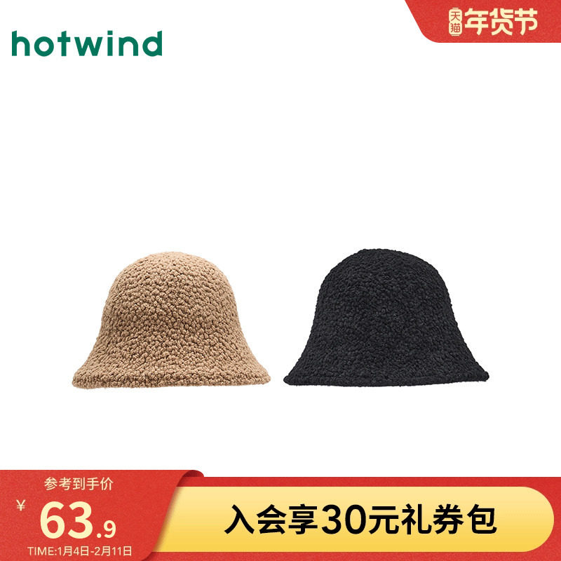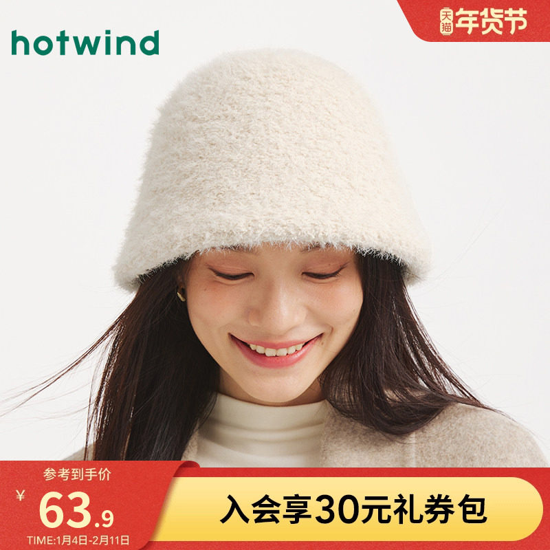 热风女士帽子2025年冬季新款针织盆帽保暖毛绒渔夫帽百搭盆帽